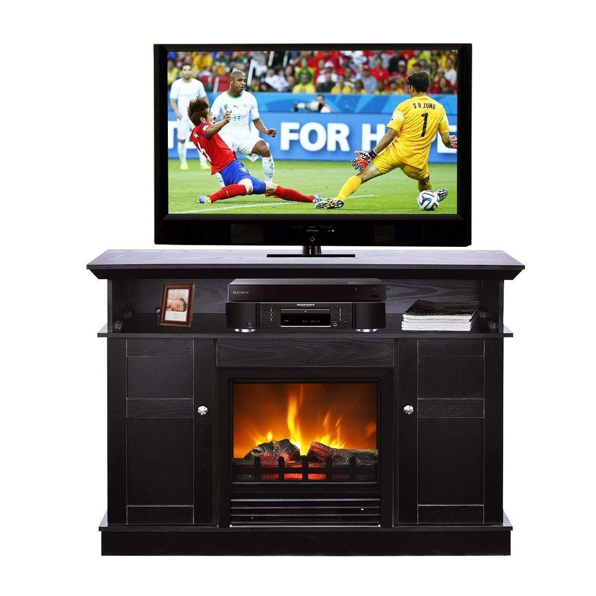 Download Living Room 65 Inch Tv Over Fireplace Pictures. Tangkula fireplace tv stand, living room media console table w/1500w electric fireplace for tvs up to 70 inches farmhouse tv stand wood sliding barn doors modern entertainment center for 65 inch tv, living room tv console storage cabinet with doors and adjustable shelves, white. Here's what you need to know before you hang a television over a fireplace.
